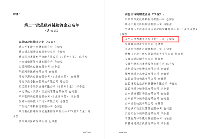 中國物流與采購聯(lián)合會報道,經(jīng)中國物流與采購聯(lián)合會冷鏈物流企業(yè)星級評估委員會第二十次會議審定,合肥天恒肉類食品有限責(zé)任公司(徽商冷鏈)通過第二十批星級冷鏈物流企業(yè)評審,正式獲評四星級冷鏈物流企業(yè)(倉儲型)。